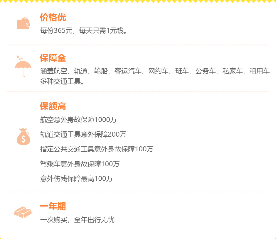投保份数:同一保障期间内,每位被保险人只能拥有1张中意百万护驾365意外伤害保险(优享版)